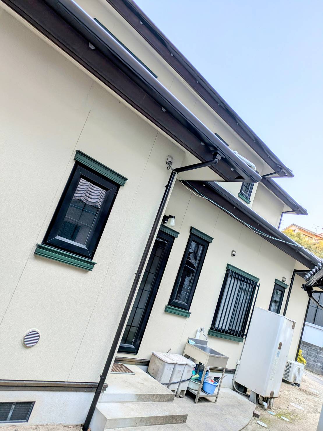 外壁、軒天、付帯部(樋・胴差・水切り・サッシ飾り)塗装工事